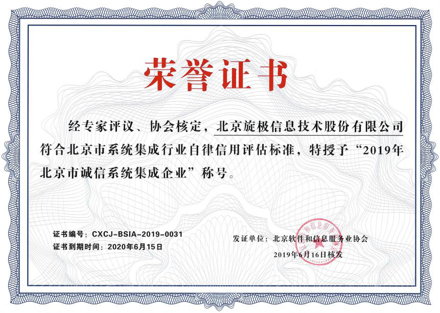 日前,由北京市经济和信息化局、北京市社会团体管理办公室指导,北京软件和信息服务业协会组织召开的行业自律信用评估活动圆满落下帷幕,北京qy球友会(千亿)信息技术股份有限公司(以下简称“qy球友会(千亿)信息”)荣膺“2019年北京市诚信系统集成企业”称号。